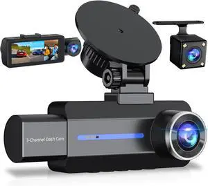 Dash Cam Front and Rear 2.5K/1440P, 3 Channel Dash Camera for Cars Dash Cam Front Rear and Inside with 32GB Card, 3.16" IPS Screen, G-Sensor, Loop Recording, Night Vision, Parking Mode