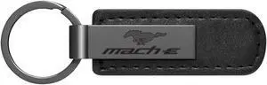 Ford Mustang Mach-E Gunmetal Gray Metal Plate Black Leather Strap Key Chain