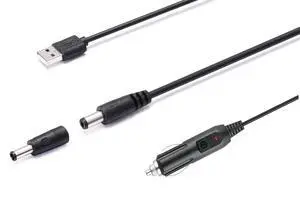 12V Car Charger(Max 10A) + 5V DC Power Cable, with 11 Connectors for DVD Player, Camera, GPS, Bluetooth Speakers, Shaver Fans