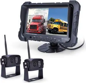 Digital Wireless Backup Camera System, Dual HD 720P Camera with Infrared Night Vision and Wide Viewing Angles, 7inch Wireless Monitor Split Screen for Trailer, RVs, Camper, 5th Wheel, etc