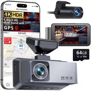 Dash Cam Front and Rear, 4K HDR Dash Camera for Cars, 3" IPS Screen Dash Cam Built-in GPS with 5.8G WiFi UHD Night Vision Free 64G Card, Parking Monitor, G-Sensor