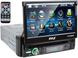 Pyle Single DIN Head Unit Receiver - In-Dash Car Stereo CD/DVD Player with 7" Multi-Color Touchscreen Display, Audio Video System with Bluetooth for Wireless Music Streaming & Hands-free Calling