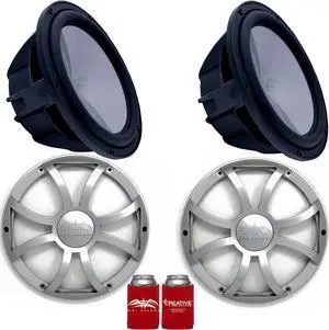 Two Wet Sounds Revo 12" Subwoofers, Grills, & RGB LED Rings - Black Subwoofers & Black Closed Face SW Grills - 2 Ohm