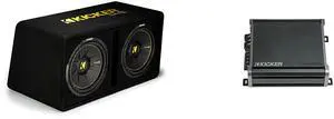Kicker Comp R 12 Inch Dual Subwoofer in Vented Enclosure Package with 46CXA8001 Amplifier