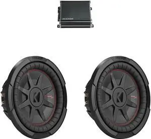 Kicker 10 Inch Comp RT Thin Woofer Includes Two 48CWRT102 Package with 46CXA8001 Amplifier