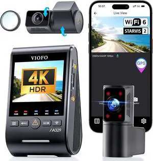 VIOFO A329S 4K 60FPS Dash Cam Front and Rear, 4K+2K Dual Dash Camera for Cars, Power Saving Parking Mode, Wi-Fi 6 App Control, Dual STARVIS 2 Sensors, Supports up to 4TB SSD or 512GB microSD Card