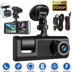REXING S3 3-Channel Dash Cam Front, Cabin, Sides 1080P+1080p+1080p, 3 LCD, GPS, Infrared Night Vision, Parking Monitor, WiFi, APP, 170°Angle, Loop Recording, Side Coverage, Support up to 256GB- Color: Black