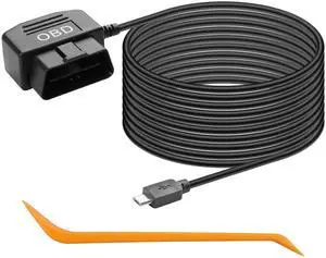 OBD Power Cable for Dash Camera, OBD to Micro USB Adapter Hardwire Charger Cable 24 Hours Surveillance/Acc Mode with Low Voltage Protection 12-36V to 5V 3A (11.5FT) (Straight Micro USB)