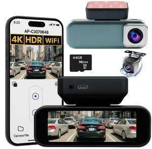 Dash Cam Front and Rear Camera,4K+1080P, 5.8GHz WiFi & GPS Dash Camera for Cars,with 64G SDcard,1.47" Display Dashcam, 24HParking Mode,App Control,Super Night Vision,WDR,Support Max 256GB