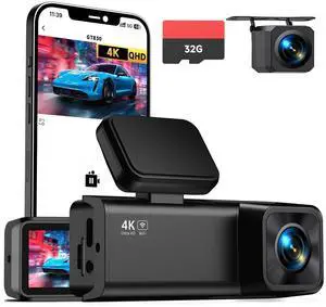 Dash Cam Front 4K - 1.5" IPS Display & 5G WiFi & 64G Card, 360° Rotation Mini Dashcam, Car Camera with WDR Night Vision, 24H Parking Mode, G-Sensor, Loop Recording,170° Angle, Dash Camera for Cars