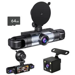 Dash Cam Front and Rear, 1080P Dash Camera for Cars, 4 Channel Car Camera (Front/Rear/Inside*2) with 64GB Card, Loop Recording, Night Vision, HDR, G-Sensor, Reversing lmage Assist, Support 256 GB Max