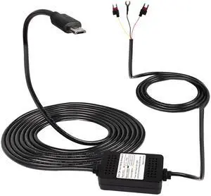Dash Cam Acc Hardwire Kit, Micro USB Hardwire Dashcam Kit Step-Down Cable, 12V-24V to DC 5V 3A Car Dash Charger Power Cord for Cars Camera GPS11.5FT