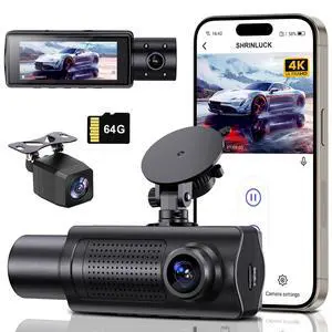 4K+1080P+1080P 5.8GHz WiFi Dash Cam Front and Rear Inside, Free 64G SD Card, 4K UHD 3 Channel Dash Camera for Cars, 360° All Sides Dashcam, G-Sensor, Night Vision, WDR, 24H Parking Monitor- Brand: SHRINLUCK