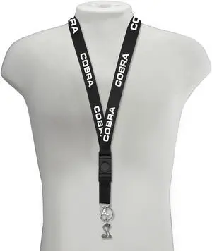 Ford Mustang Cobra Black Strap ID Holder Lanyard with 3D Cobra Metal Key Chain Charm