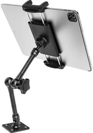 Dosvsi Heavy Duty Tablet Holder for Truck, Drill Base Car Tablet Holder with Metal Adjustable Arm, RV Pickup Vehicle Dashboard Mount for iPad Pro 12.9 Air Mini, Galaxy Tab, Z Fold, iPhone, 4-13"Device