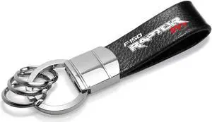 Ford F-150 Raptor SVT Black Real Leather Strap Chrome Round Hook Metal Key Chain