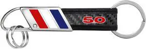Ford Mustang 5.0 in Red on Real Carbon Fiber Leather Key Chain with Red White Blue Stripe