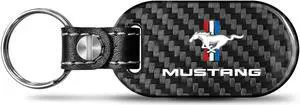 Ford Mustang Tri-Bar 100% Real Black Carbon Fiber Tag Style Key Chain