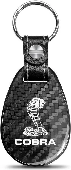 Ford Cobra Real Black Carbon Fiber with Leather Strap Large Tear Drop Key Chain