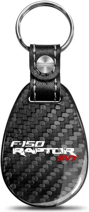 Ford F-150 Raptor Real Black Carbon Fiber with Leather Strap Large Tear Drop Key Chain