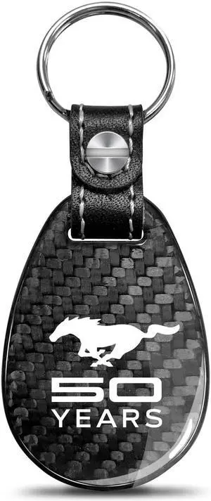 Ford Mustang 50 Years Real Black Carbon Fiber with Leather Strap Large Tear Drop Key Chain