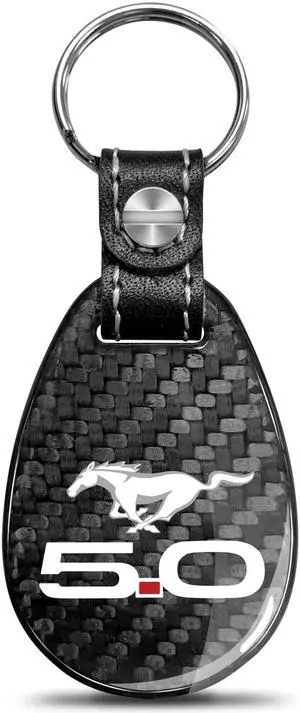 Ford Mustang 5.0 Real Black Carbon Fiber with Leather Strap Large Tear Drop Key Chain