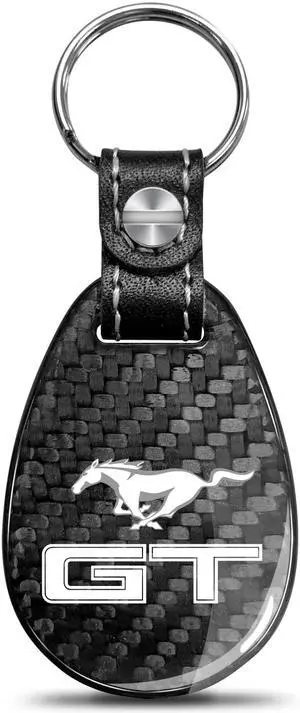 Ford Mustang GT Real Black Carbon Fiber with Leather Strap Large Tear Drop Key Chain