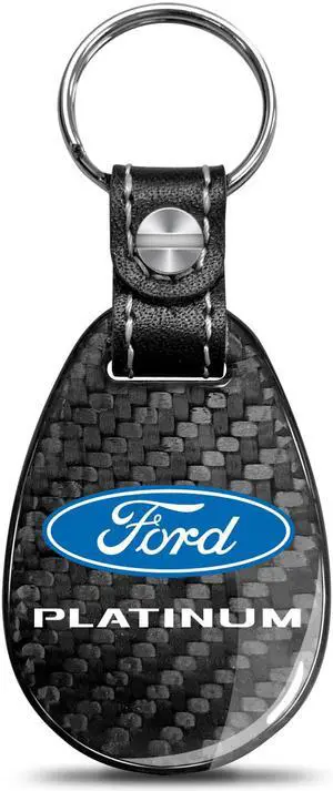Ford Platinum Real Black Carbon Fiber with Leather Strap Large Tear Drop Key Chain