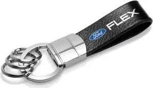 Ford Flex Black Real Leather Strap Chrome Round Hook Metal Key Chain