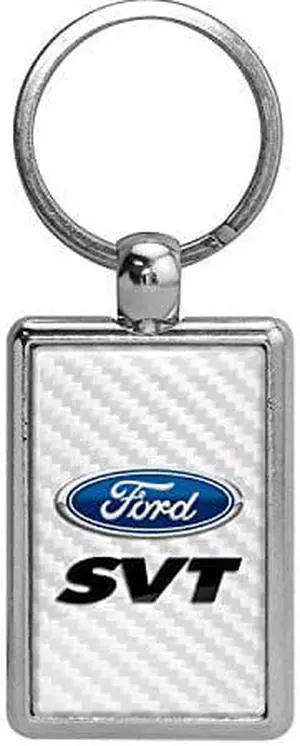 Ford SVT White Carbon Fiber Backing Brush Rectangle Metal Key Chain