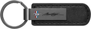 Ford Mustang Script Gunmetal Black Metal Plate PU Leather Strap Key Chain