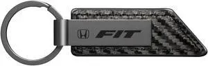 Honda Fit Gunmetal Black Gray Metal Plate Carbon Fiber Texture Black Leather Key Chain