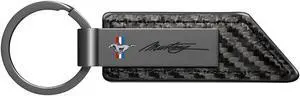 Ford Mustang Script Gunmetal Black Gray Metal & Carbon Fiber Texture Leather Key Chain
