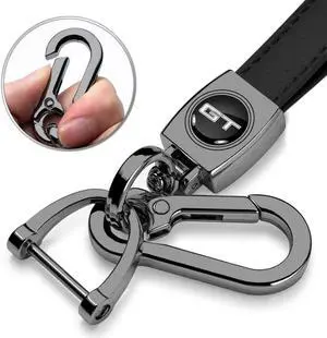 Ford Mustang GT Logo in Black on Black Leather Loop-Strap Dark Gunmetal Hook Key Chain