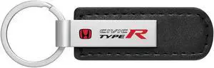 Honda Red Logo Civic Type-R Silver Metal Black PU Leather Strap Key Chain