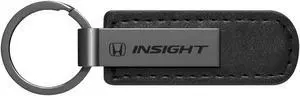 Honda Insight Gunmetal Black Metal Plate PU Leather Strap Key Chain