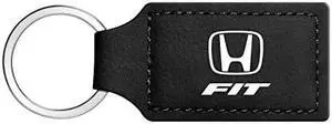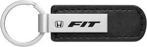 Honda Fit Silver Metal Black PU Leather Strap Key Chain