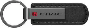 Honda in Red Civic Gunmetal Black Metal Plate PU Leather Strap Key Chain