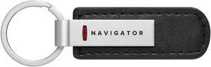 Lincoln Navigator Gunmetal Black Gray Metal & Carbon Fiber Texture Leather Key Chain