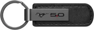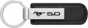 Ford Mustang 5.0 Silver Metal Black PU Leather Strap Key Chain