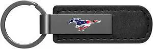 Ford Mustang USA Flag Gunmetal Black Metal Plate PU Leather Strap Key Chain