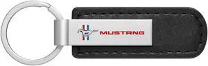 Ford Mustang Gunmetal Black Metal Plate PU Leather Strap Key Chain