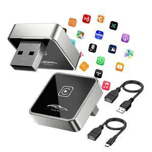 Wireless CarPlay Adapter for iPhone[2025 Upgrade]Convert Wired to Mini Wireless Bluetooth Car Play Adapter, Plug and Play Stable Connection Compatible for Cars from 2016 & iOS 10+,USB A/Type C