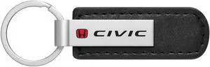 Honda in Red Civic Silver Metal Black PU Leather Strap Key Chain