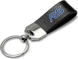 iPick Image - Large Genuine Black Leather Loop Strap Key Chain - Ford Focus RS