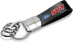Ford SVT Black Real Leather Strap Chrome Round Hook Metal Key Chain