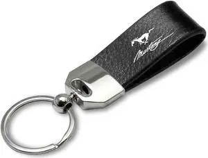 Ford Mustang Script Large Genuine Black Leather Loop Strap Key Chain