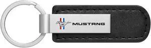 Ford Mustang Tri-Bar Silver Metal Black PU Leather Strap Key Chain