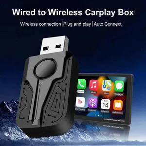 Black 2 in 1 Wireless Carplay Android Auto AI Box Car Play Adapter USB Port Dongle for OEM Wired CarPlay Upgrade