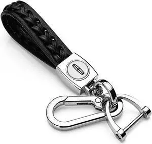 Lincoln Logo in White Braided Rope Style Genuine Black Leather Key Chain